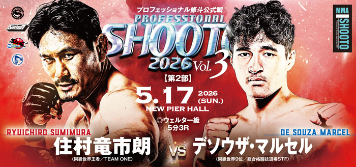 2026年5月17日(日)東京・ニューピアホールで開催されるプロフェッショナル修斗公式戦・昼夜大会『PROFESSIONAL SHOOTO 2026 Vol.3』。大トリを務めるカードが決定した。修斗ウェルター級世界王者・住村竜市朗(同級世界王者/TEAM ONE)の参戦だ。