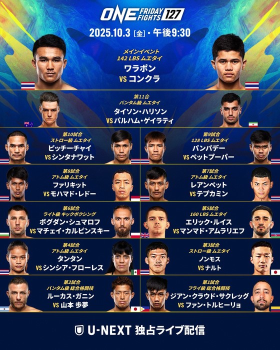 - ムエタイONE Friday Fights 127:山本歩夢 ナルト出場2025年10月3日(金)タイ・ルンピニースタジアム