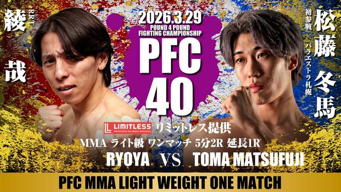 松藤「過去に対戦させていただいた大先輩、櫻庭泰裕選手や渡辺トシキ選手も参戦していた、PFCの舞台に、いつか自分も立ちたいと強く思い続けてきました。普段は道外で戦っていますが、地元札幌でランキングを駆け上がり、チャンピオンになるまでの物語を皆さんに見てもらえることが、今から楽しみで仕方ありません。アマチュア時代、人生を変える逆転フィニッシュ勝利を挙げた会場もPODジムのケージでした。この場所には確かな縁があると感じています。プロの舞台でも、必ずこのケージでフィニッシュします」