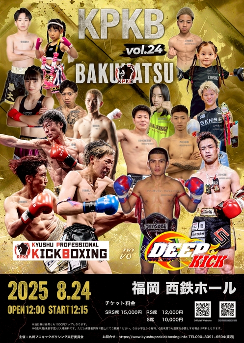 2025年8月24日(日)福岡・西鉄ホール『KPKB(九州プロキックボクシング)vol.24&25』の対戦カードが発表された。  昼の部のvol.24は、大阪を拠点とするDEEP☆KICKとの「九州vs関西 全面対抗戦」がテーマの全8試合(アマチュア4試合含む)。キックボクシングの未来を担う小学生から、KPKB新旧王者の川森悠人・日畑達也・幸輝らが迎え撃つ。  関西もDEEP☆KICK-53kg