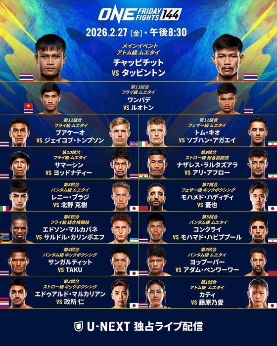 ONE Friday Fights 144 政所仁、憂也、藤原乃愛、北野克樹、TAKU 出場