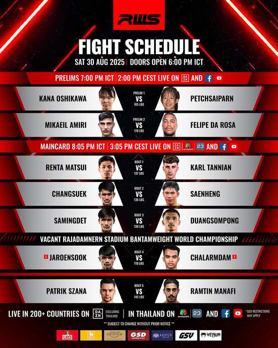 2025年8月30日(土)タイ・ラジャダムナンスタジアム『RWS』に、日本人選手2名が出場する。