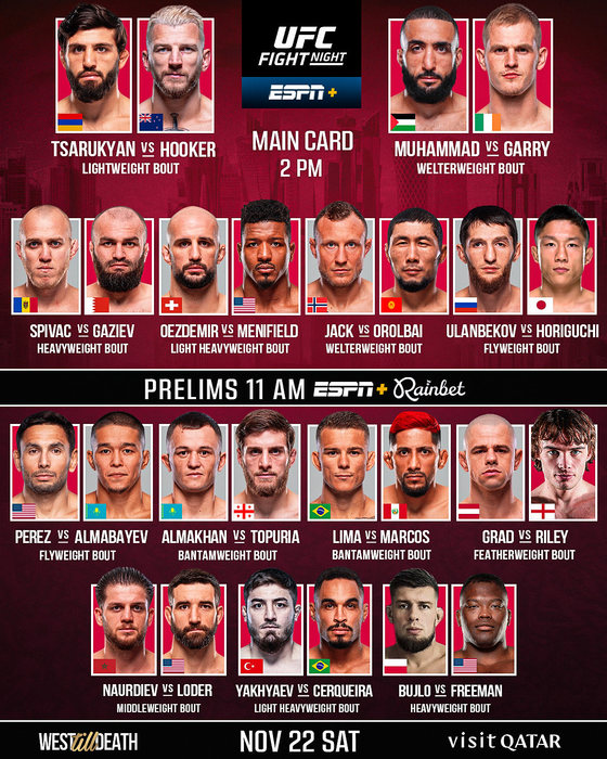 - MMAUFC Fight Night: Tsarukyan vs. Hooker 堀口恭司vs.ウランベコフ2025年11月23日(日)カタール・ドーハ・ABHAアリーナ