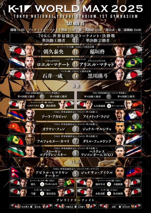 - K-1K-1 WORLD MAX 2025~-70kg世界最強決定トーナメント・決勝ラウンド~2025年11月15日(土)東京・国立代々木競技場第一体育館
