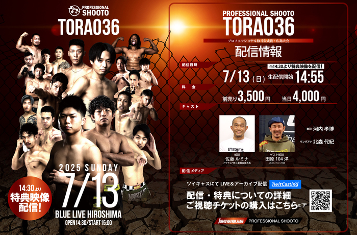 プロフェッショナル修斗公式戦 広島大会「TORAO36」ツイキャス配信