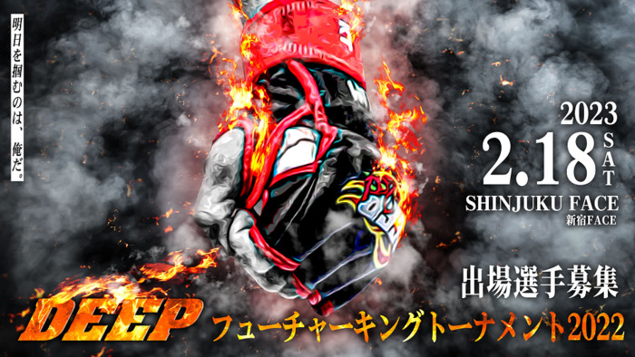 毎年恒例となった「DEEP フューチャーキングトーナメント」が、2023年2月18日に新宿FACEにて開催が決定。出場選手を募集している。2022年に活躍した五明宏人、濱口奏琉、山本颯志はいずれも前回の優勝者たち。彼らに続く、未来のDEEPERが現れるか。