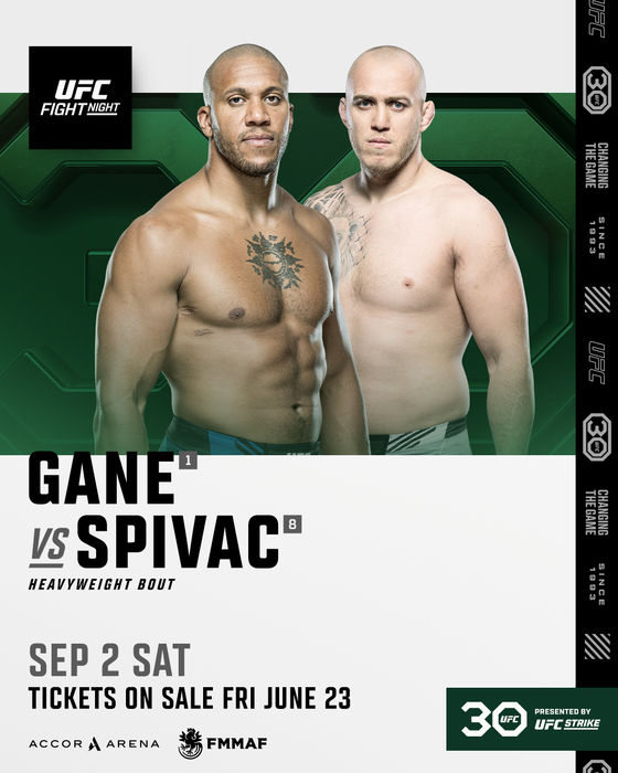 ▼UFC世界ヘビー級王座決定戦 5分5R〇ジョン・ジョーンズ(米国)27勝1敗(UFC21勝1敗)※UFC5連勝→ヘビー級転向 248lbs/112.49kg[1R 2分04秒 ギロチンチョーク]×シリル・ガ