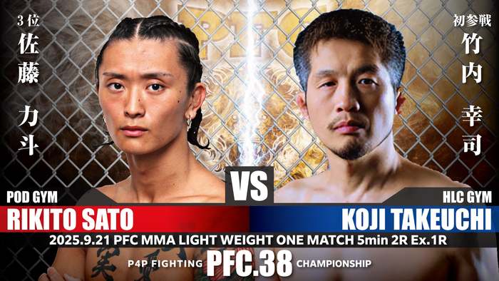 ライト級3位、POD GYMの佐藤力斗は、2024年3月の『PFC 32』でプロデビュー戦を1R 23秒KO勝ちも、2戦目で『Fighting NEXUS vol.35』で小川健晴に1R マウントからのパウンドでTKO負け。3戦目でPFCで能登崇に一本負け。25年7月の前戦では反則の後頭部攻撃により反則負けとなっている。