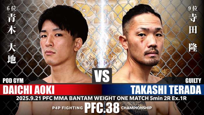 青木「POD所属の青木大地です。今回はバンタム級ですが、対戦相手がフェザー級の2位のランカーなので、気合い入りまくりです! 寺田選手はジムに入会してすぐの頃から見てきた尊敬する選手なので、胸を借りてぶっ飛ばしたいと思います! 皆さん応援よろしくお願いします!」