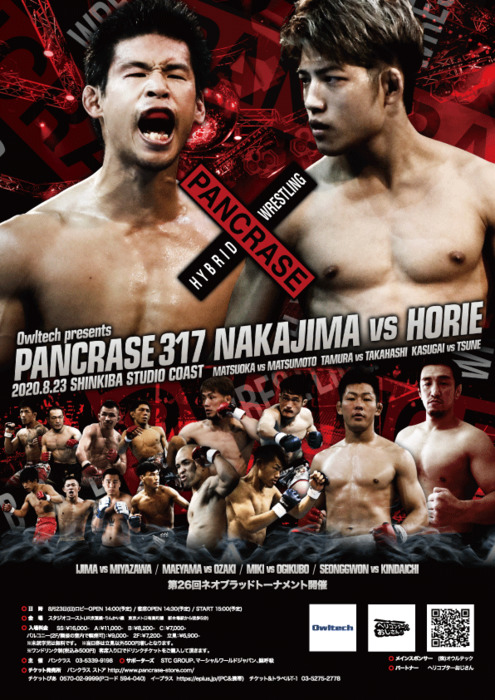 - ニュースMMA2020.06.04【PANCRSE】王者ISAOに挑戦するのは? 中島太一vs.堀江圭功が決定! 4カ月の延期を経て松本光史vs.松岡嵩志も=8月23日(日)新木場2020年8月23日(日)東京・新木場スタジオコーストで開催される「Owltech presents PANCRASE 317」にて、中島太一(ロータス世田谷)と堀江圭功(ALLIANCE)によるフェザー級 次期挑戦者決定戦が決定した。 ▼フェザー級 次期挑戦者決定戦 5分3R中島太一(ロータス世田谷)#4位・14勝11敗1分 堀江圭功(ALLIANCE)#5位・9勝2敗 2017年NBT同級優