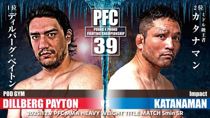 カタナマン「私はカタナマンだ。アマチュアパンクラストーナメントで優勝した2019年7月7日それがアマチュア格闘技のはじまり。私はその日職場で応援してくれた女性に11万円のティアラをプレゼントしフラれました。2020年12月にはプロ初勝利、その勢いで告しフラれました2021年から2022年はチャクリキトーナメントやインパクトで活躍はしたものの3人にふられました。2023年転機がPFCに参戦させていただき勝利。2024年7月7日にはタイトルマッチ勝利。ティアラ事件から5年、様々なフラれを体験して今やヘビー級タイトルマッチ。もう彼女はいらねえ 俺は格闘技が彼女だ! さあペイトン 俺の告白 受けてくれるかい?」