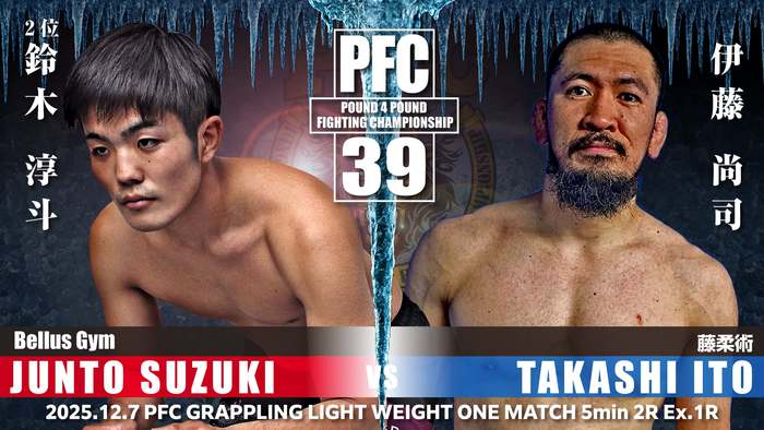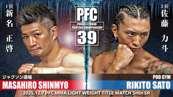 - ニュースMMA2025.09.09【PFC】MMAライト級・佐藤力斗vs.竹内幸司、フライ級で黒石大資vs.龍城、バンタム級で青木大地vs.寺田隆。グラップリングで大高幸平vs.池田貴一ほか2試合も=9月21日(日)2025年9月21日(日)北海道札幌市のPODアリーナにて、『PFC.38』および『STONES&ROOKIE』が開催される。 同団体で渡部修斗が火をつけたグラップリングマッチが、今大会では3試合。さらにMMAが4試合の全7試合が、初めて交互に行われる。 ▼第7試合 メインイベント MMAライト級 5分2R・延長1R佐藤力斗(POD GYM)3位竹内幸司(HLC GYM)初参戦 ライト級3