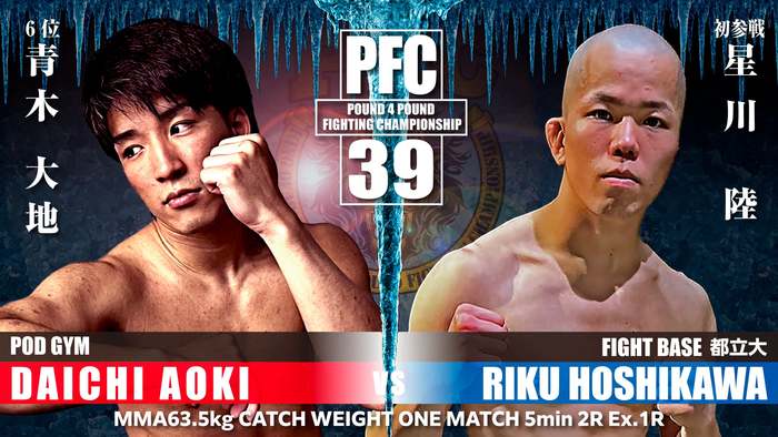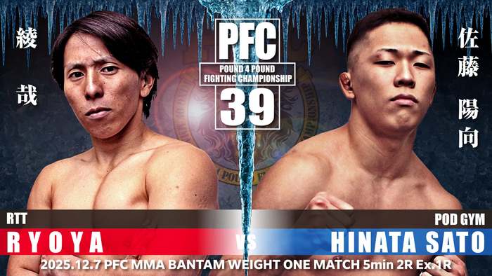 綾哉「綾哉です。前大会に引き続き参戦します。今大会でPFC6戦目となります。未だ勝ち星に恵まれず、この状況を打破するべく、毎日2部練こなしています。相手は若く体力もあると思いますが、圧倒的なパワーでKO決着にこだわって試合します。勝ちにこだわりたいですが、器用なタイプではないので、負ける勇気を持って前に出て攻めます。北海道の皆さん、応援よろしくお願いします! 盛り上げます!」