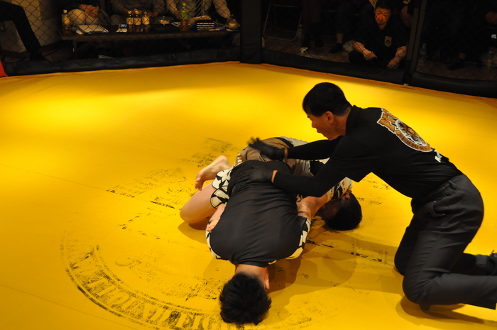 渡部修斗が火を付けたプログラップリング戦に二人の猛者が手を上げた! 互いに岩手と九州でジムを持つ代表、長である。しかも、年齢も同じ。柔術の帯では岩手の大高が紫帯、九州の池田が黒帯である。池田はQUINTET九州大会の代表選手でもあり、下馬評では大高が不利との予想が大方。大高はMMAファイターであるが、今回初のグラップリグ戦への挑戦であった。