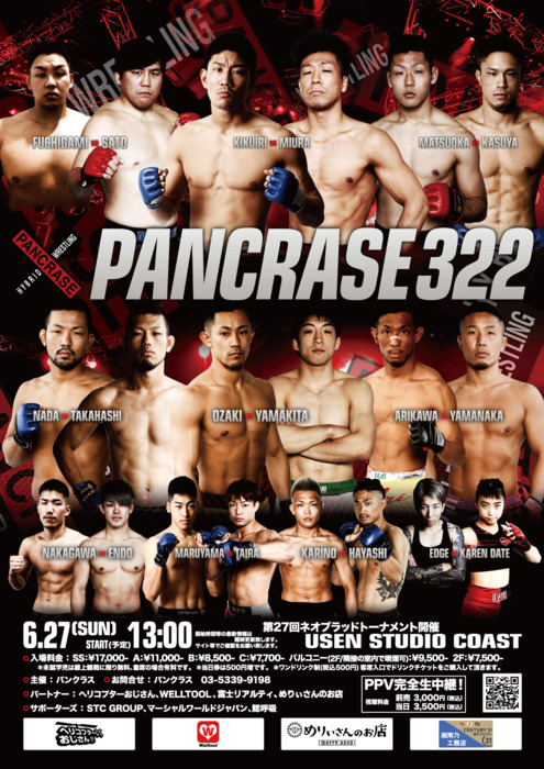 - ニュースMMA2021.03.08【PANCRASE】2021年上半期ナンバーシリーズは5月30日開幕、6月27日大会も決定PANCRASEが、2021年5月30日(日)に「PANCRASE 321」、6月27日(日)に「PANCRASE 322」を東京都・新木場のスタジオコーストで開催することを発表した。 4月4日(日)に「PANCRASE大阪大会」が大阪コレガスタジオで開催されるが、ナンバーシリーズとしては、2020年12月13日の「PANCRASE 321」以来、5カ月振りとなる待望の2021年開幕戦となる。