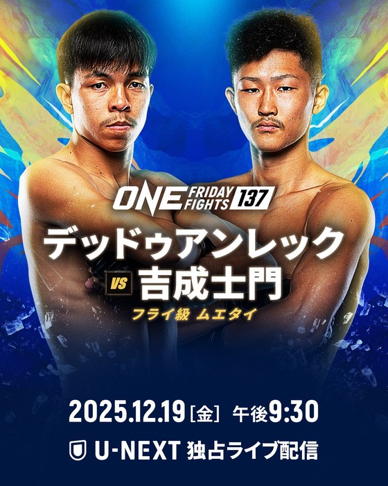 - ニュースムエタイ2025.12.07【ONE FF】前回無効試合となった吉成士門の次戦が早くも決定、内藤大樹に2連勝しているデッドゥアンレックと対戦2025年12月19日(金)タイ・ルンピニースタジアム『ONE Friday Fights 137』(U-NEXT配信)に、吉成士門(エイワスポーツジム)の出場が決まった。 士門・エイワスポーツジムこと吉成士門は、これまでにタイ国プロムエタイ協会スーパーフェザー級&ライト級王者、WPMFインターナショナル スーパーバンタム級王者、WMCインターコンチネンタル バンタム級王者、WMC日本フライ級