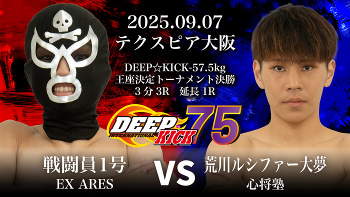 2025年9月7日(日)大阪・泉大津市のテクスピア大阪で行われる『DEEP☆KICK 75』の第1弾対戦カードとして、DEEP☆KICK-57.5kg王座決定戦に加えDEEP☆KICK-70kg挑戦者決定トーナメント準決勝など計5試合が発表された。  6月より始まった「DEEP☆KICK-57.5kg第6代王座決定トーナメント」の決勝戦は、互いに当時ランキング上位の選手を下し決勝進出を決めた戦闘