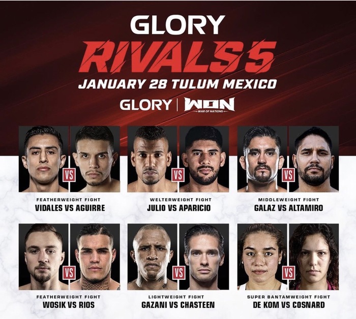 日本のRISE、オランダのEnfusionに続き世界の団体とのクロスプロモーション第三弾としてメキシコのWar Of NationsとGLORY Kickboxingが初タッグを組む今回のRIVALS 5。2022年10月にフェザー級タイトルマッチでペットパノルムンと激闘の末敗れたヴィダレスが南米の強豪トマス・アギーレと対戦。U-NEXTの解説はペットパノルムンと対戦した第6代RISEライト級王者・原口健飛が務める。