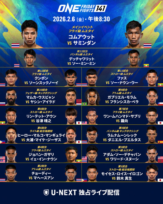 - 大会名ONE Friday Fights 141 谷津晴之、羅向、大浦マイケ、鈴木真生 出場