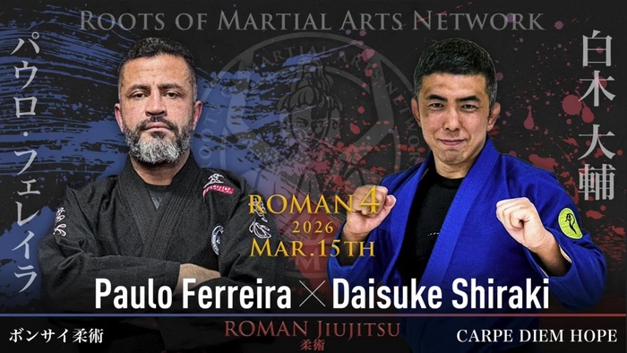 - レポートMMA2025.10.11【ROMAN】道衣MMAでマルコス・ヨシオ・ソウザが山下アランに一本勝ち、ルターバッハが瓜田をKO、ヨースキストーが石川に一本勝ち、メネギンが清水に三角絞め、竹本が松本に判定勝ち、マイケがまたも秒殺勝利、マルロン・ゴドイがシルバを襟絞め、ギレルメが36秒一本勝ち。ROMAN柔術で岡本が半谷と熱闘、市川がキムラ極め、八巻が大脇投げて判定勝ち2025年10月11日(土)、東京・GENスポーツパレスにて開催の『ROMAN 3』(U-NEXT配信)が開催された。 2024年10月の『ROMAN 1』、2015年4月の『ROMAN 2』に続く、第3回大会では「道衣MMA」でマルコス・ヨシオ・ソウザvs.山下アラン、ワールドクラスの強豪ジョイルトン・ルターバッハvs.“佐山サトル最後の弟子”瓜田幸造、岡本裕士vs.半谷泰佑、エリック・メネ