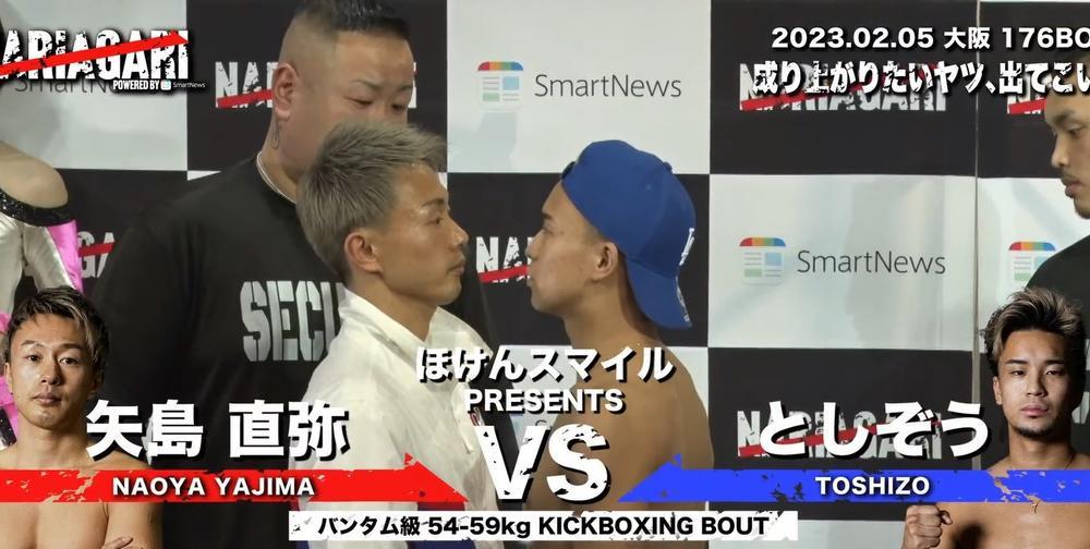 同大会の第15試合で行われ、皇治が「裏メインですね。俺はこの戦いはずっと楽しみにしています。実力一筋でやってきた矢島選手と、おちゃらけでやってきたとしぞう。これとしぞうが勝ったら凄いことになりますからね」と期待をかけていた矢島直弥vs.としぞうの一戦(ボクシ