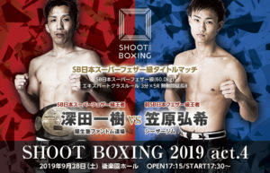 2019年9月28日(土)東京・後楽園ホールで開催される『SHOOT BOXING 2019 act.4』の全対戦カード&試合順が発表された。  今大会のメインイベントは既報通り、S-cup2018世界王者・海人(TEAM F.O.D)vs RISEミドル級王者イ・ソンヒョン(韓国/RAON)のSBとRISEの王者対決。  海人は本来65kg級だが、世界的に層の厚い70kg級転向も視野に入れ、6月