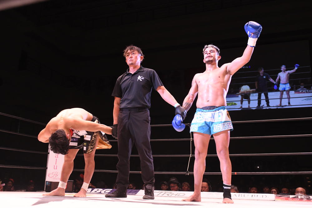 Krush.168 ~in NAGOYA~2024年11月23日(土)愛知・名古屋国際会議場イベントホール※ABEMAにてLIVE配信 ▼メインイベント(第8試合)-63kg契約 3分3R延長1R×大岩龍矢(K-1 GYM SAGAMI-ONO KREST/Krushライト級王者)延長R 判定0-3 ※9-10×3〇トーマス・アギーレ(アルゼンチン/Dojo Serpiente)※本戦の判定は29