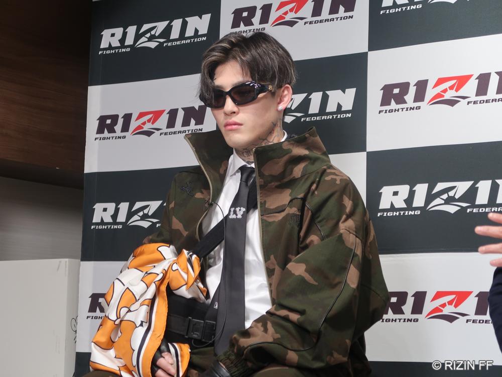 会見には平本が出席。右腕を吊った状態で着席した平本は「試合を本当に楽しみにしてくれていたRIZINフ