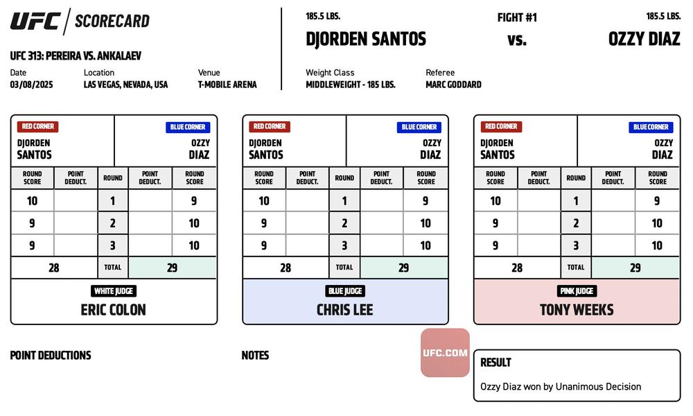 2025年3月8日(日本時間9日午前8時半~)、米国ラスベガスのT-モバイル・アリーナにて『UFC 313: Pereira vs. Ankalaev』(U-NEXT配信/UFC Fight Pass配信)開催された。  メインイベントは「UFC世界ライトヘビー級選手権試合」(5分5R)で、王者アレックス・ペレイラ(ブラジル)と、挑戦者マゴメド・アンカラエフ(ロシア)が対戦。コメインではライト
