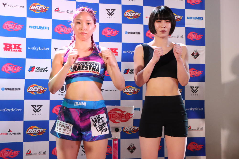 【DEEP JEWELS】浜崎朱加「一本で仕留めたい」vs.須田萌里「すごく待ち遠しかった」、東よう子vs.MANA、青野ひかるvs.彩綺、山﨑桃子vs.ジャカ季美香、ちびさいKYOKAvs.古林礼名、せりなvs.あきぴも=『DEEP JEWELS 48』前日計量
