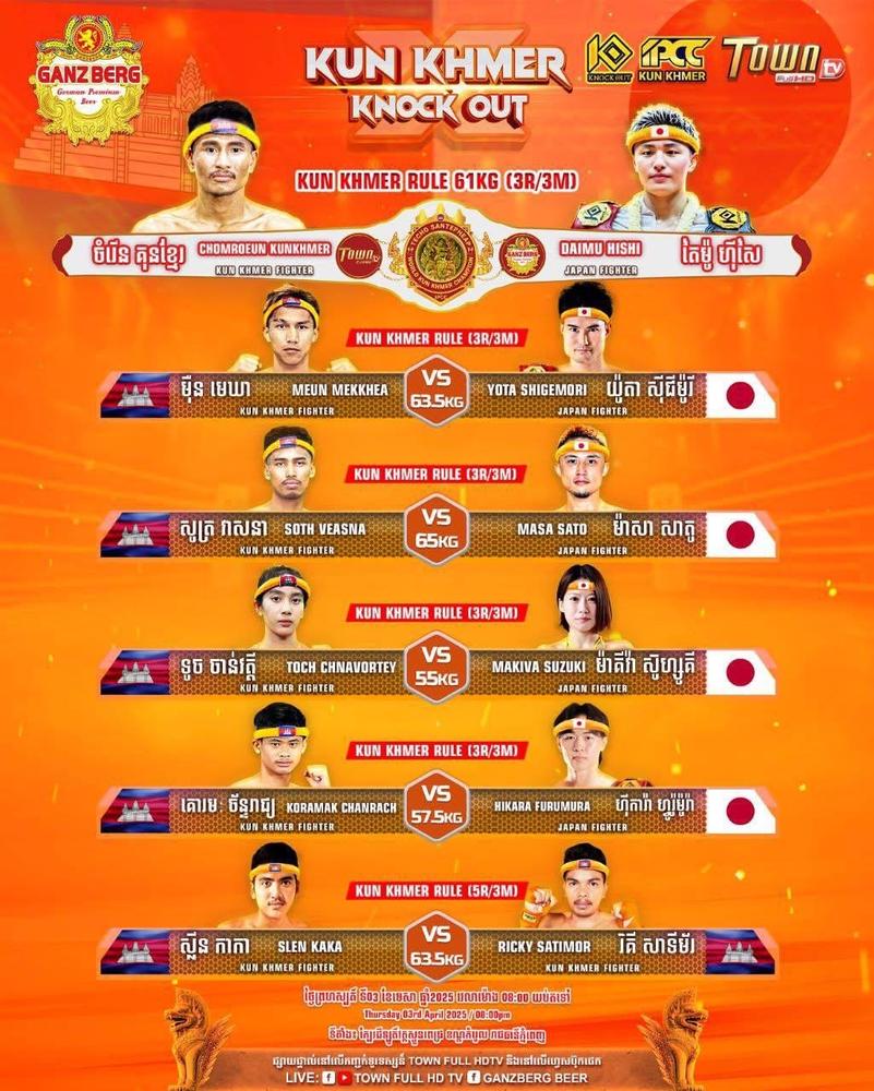 2025年4月3日(木)カンボジアで開催されるクンクメール大会にて行われる「KNOCK OUTvs.クンクメール5vs.5対抗戦」の前日計量が、2日(水)に行われた。
