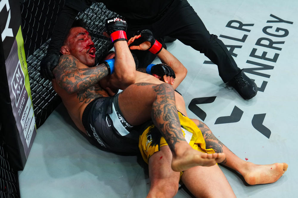 【PFL】渡辺華奈がビショップに打撃戦挑むも判定負け、女子フライ級1回戦敗退。シャカロワが優勝候補ヴェラスケスに初回一本勝ちでビショップと対戦へ。カモーシェが85秒TKO勝ちで無敗ダナと対戦に。バンタム級は元UFCハードリーがマットスにオタツイスター極める、朝倉海のスパーリングパートナーのグティエレスがヌッツィに一本勝ち
