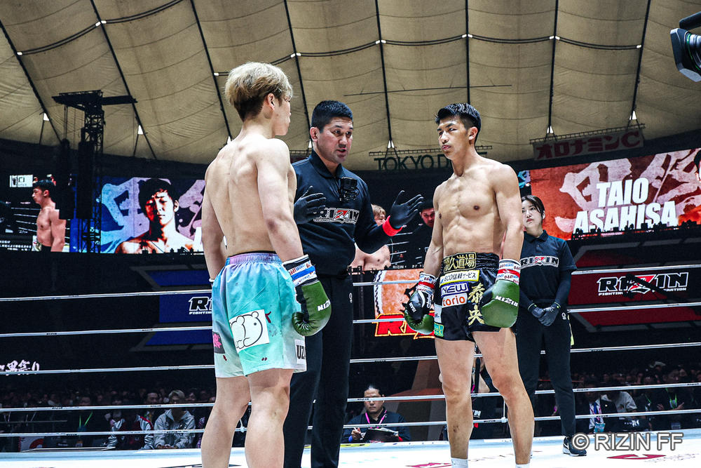 2025年5月4日(日)東京ドームで開催された『RIZIN男祭り』の第3試合RIZINキックボクシングルール63.0kg契約3分3Rで、ウザ強ヨシヤ(FIGHT CLUB 428)に2R1分16秒、KOで勝利した朝久泰央(朝久道場)が試合後インタビューに答えた。 勝利に関しては“やったぜベイビー!” ――試合後の率直な感想は? 「勝利に関しては“やったぜベイビー!”って感じなんですけど、ヨシヤさ