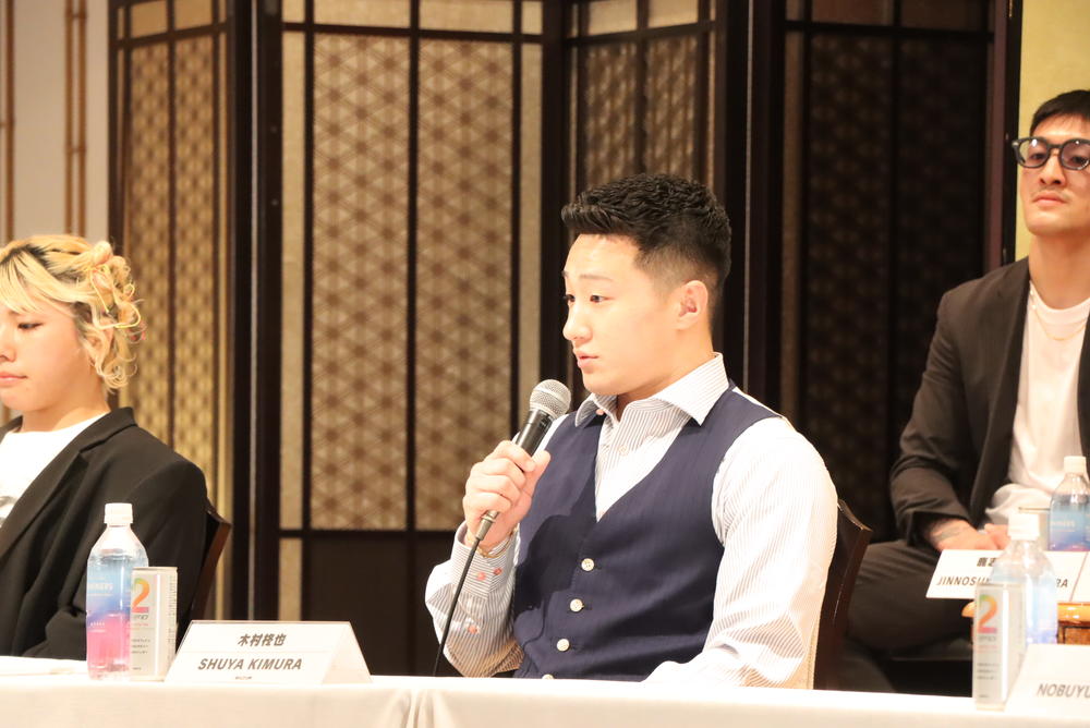 5・4東京ドームで発表されたRIZINフェザー級(66.0kg)5分3Rでヴガール・ケラモフ(アゼルバイジャン)と対戦する、木村柊也(BRAVE)も出席。試合への意気込みを語った。