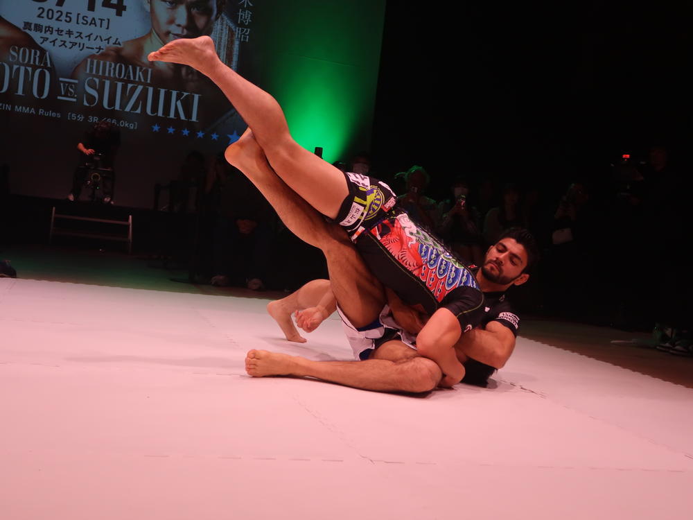 2025年5月31日(土)韓国・仁川PARADISE CITY『RIZIN WORLD SERIES in KOREA』に出場する選手の公開練習が、24日(土)都内にて行われた。  RIZINライト級(71.0kg)5分3Rでキ・ウォンビン(Korean Zombie MMA)と対戦するホベルト・サトシ・ソウザ(ボンサイ柔術)は、6月14日(土)北海道・真駒内セキスイハイムアイスアリーナで開催の