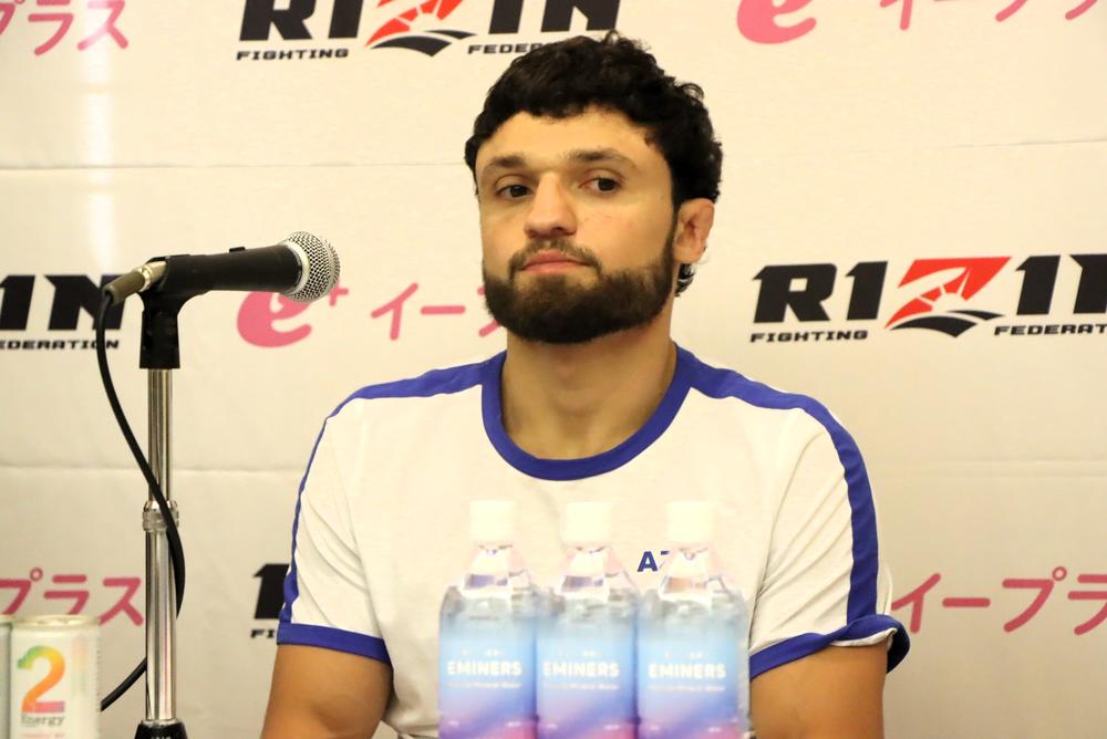 メインイベントのRIZINフェザー級(66.0kg)5分3Rで、木村柊也(BRAVE)と対戦するヴガール・ケラモフ(アゼルバイジャン)が出席。試合前の意気込みを語った。
