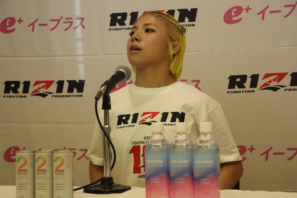 RIZINストロー級(52.50kg)5分3Rで、ソルト(マルスジム)と対戦する万智(67ジム)が出席。試合前の意気込みを語った。