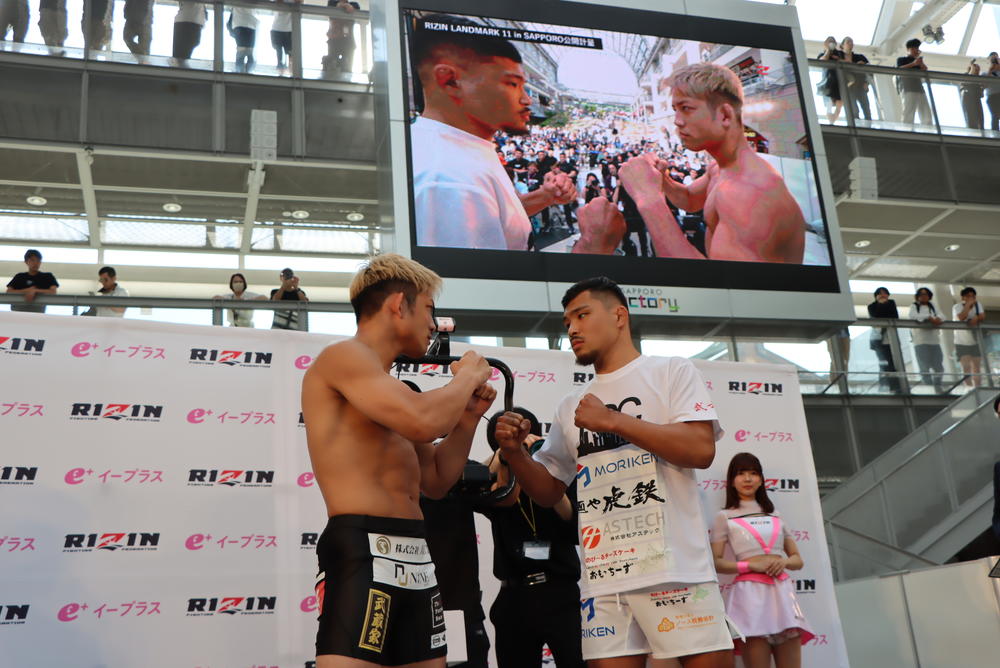 2025年6月14日(土)北海道・真駒内セキスイハイムアイスアリーナ『RIZIN LANDMARK 11 in SAPPORO』の前日公開計量が、13日(金)札幌市内にて15:30より行われた。  セミファイナルの第14試合RIZINライト級(71.0kg)5分3Rで対戦する、堀江圭功(ALLIANCE)は70.8kg、西川大和(西川道場)は70.35kgでそれぞれ計量パス。  幼少時から父
