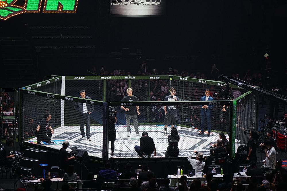 2025年6月14日(土)北海道・真駒内セキスイハイムアイスアリーナにて開催された『RIZIN LANDMARK 11 in SAPPORO』で、鈴木千裕、萩原京平、そして平本蓮がケージイン。それぞれファンに挨拶を行った。