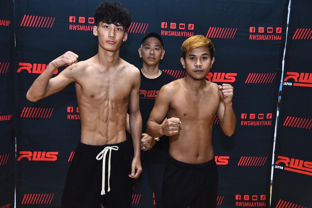 ダブルメインイベント第2試合のスーパーフライ級(52.16kg)3分3Rで対戦する、イッセイ・ウォーワンチャイ(=石井一成/ウォーワンチャイプロモーション)は52.16kgジャスト、リッティパン・パンダックラッタナブン(タイ)は51.34kg