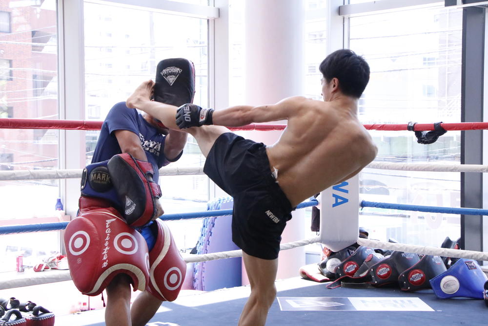2025年6月27日(金)タイ・ルンピニースタジアム『ONE Friday Fights114』(U-NEXT配信)に出場する、ラジャダムナンスタジアム3階級制覇・吉成名高(エイワスポーツジム)が19日(木)神奈川の所属ジムにて公開練習を行った。