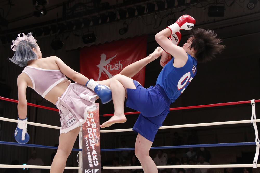 第1試合のKrush女子フライ級3分3R延長1Rで、小澤聡子(K-1 GYM SAGAMI-ONO KREST)を2R1分8秒、レフェリーストップによるTKOで破り木村萌那(K-1ジム目黒TEAM TIGER)がデビュー以来の3連勝を飾った。
