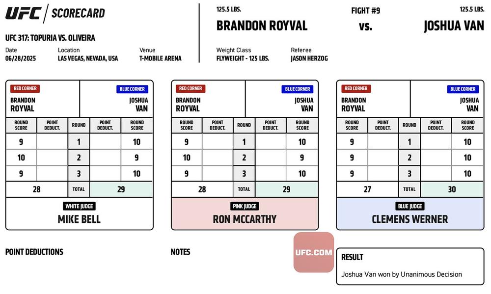 2025年6月28日(日本時間29日朝8時~)米国ネヴァダ州ラスベガスのT-モバイル・アリーナにて『UFC 317: Topuria vs. Oliveira』(UFC Fight Pass/U-NEXT配信)が開催された。  メインイベントでは、イスラム・マハチェフがベルトを返上したUFC世界ライト級王座の決定戦(5分5R)として前フェザー級王者のイリア・トプリア(ジョージア)と元ライト級王