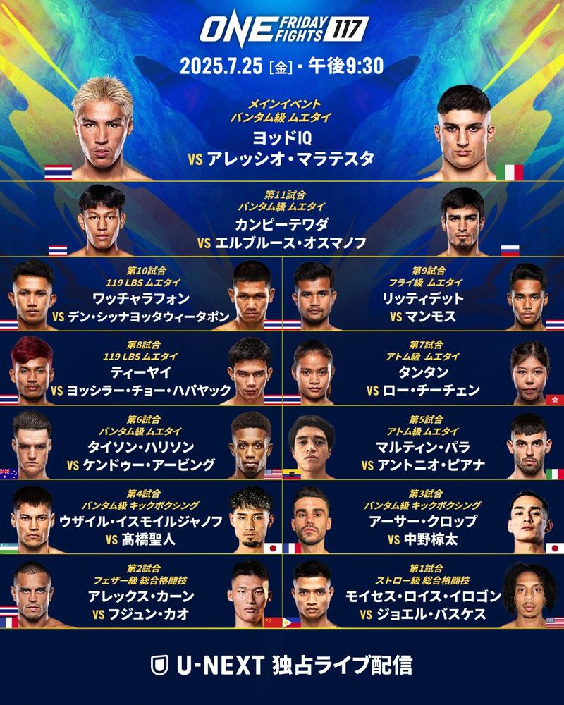 2025年7月25日(金)タイ・ルンピニースタジアム『ONE Friday Fights 117』(U-NEXT配信)に、今週は日本人選手2名が出場する。