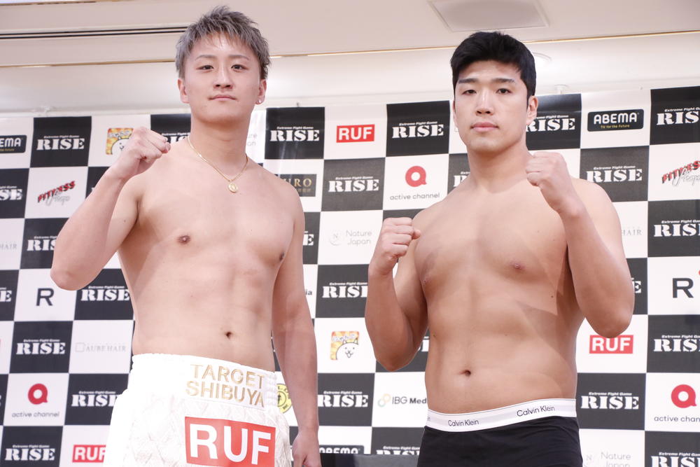 メインイベントのSuperFight!ライトヘビー級(-90kg)3分3R延長1Rで対戦する、第2代RISEライトヘビー級王者・南原健太(TARGET SHIBUYA)は89.2kg、MAX FCスーパーミドル級王者ジョン・ソンジク(韓国/PT365)は89.8