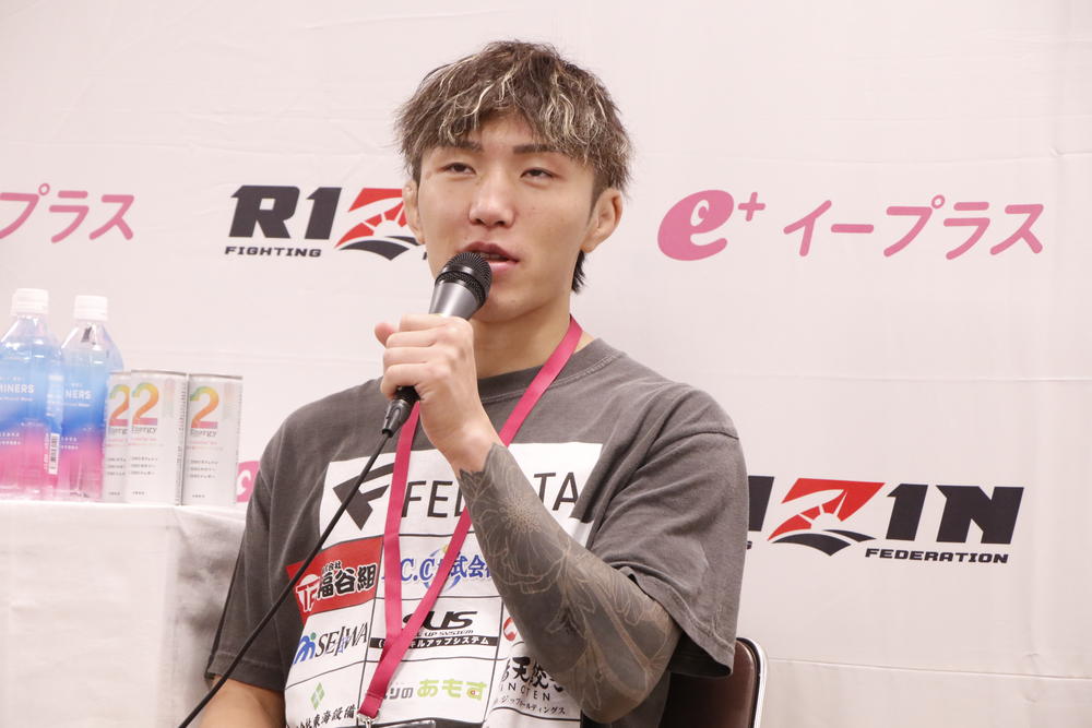2025年7月27日(日)さいたまスーパーアリーナ『超RIZIN.4 真夏の喧嘩祭り』の第4試合「RIZIN WORLD GP 2025 フライ級トーナメント」1回戦で、山本アーセン(KRAZY BEE/NAUGHTY HOUSE)を1R2分55秒、ギロチンチョークで破った神龍誠(神龍ワールドジム)。  試合後インタビューで、すでに勝ち上がりを決めていた元谷友貴(アメリカントップチーム)、扇久保