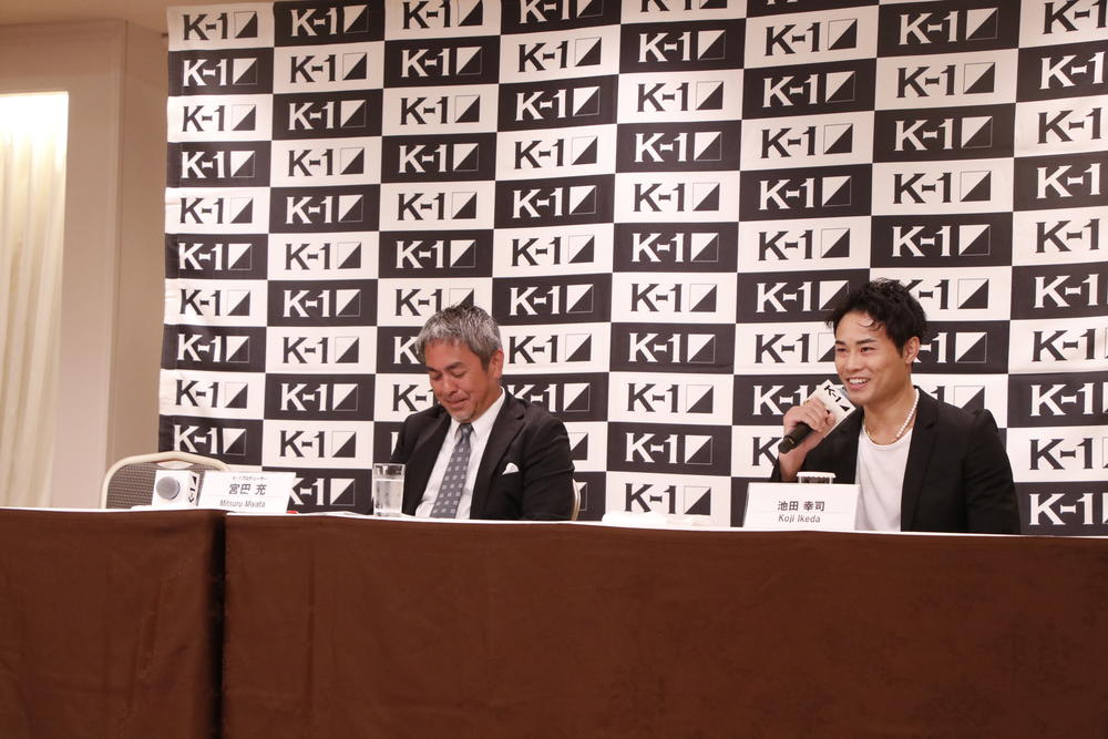 すでに発表されているK-1 WORLD GPスーパー・バンタム級タイトルマッチで、王者・金子晃大(K-1ジム自由ヶ丘/FROG GYM) に挑戦する池田幸司(ReBORN経堂)が会見に出席。