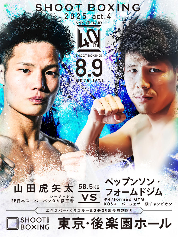 2025年8月9日(土)東京・後楽園ホール『SHOOT BOXING 2025 act.4』(U-NEXT配信)の対戦カードが一部変更となった。  山田虎矢太(シーザージム)の対戦相手ダウ・ジットムアンノン(タイ)と、安本晴翔(橋本道場)の対戦相手サタントン・チョー・ハパヤック(タイ)のタイ人2選手が怪我による欠場に。  虎矢太はペップンソン・フォームドジム(タイ)、安本はペットフアヒン・ジット