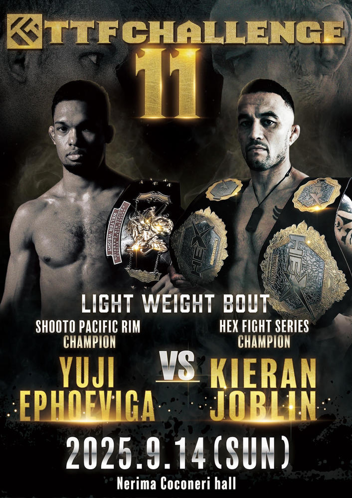 2025年9月14日(日)、東京・練馬のCoconeriホールにて開催の『TTF CHALLENGE 11』全対戦カードが下記の通り発表された。 ▼64kg契約 MMA 5分3R石井逸人(日本/TRIBE TOKYO MMA)19勝7敗3分カイル・マヨッキ(ニュージーランド/City Kickboxing)4勝0敗  参戦が発表されていた石井逸人(TRIBE TOKYO MMA)の当初の相手が