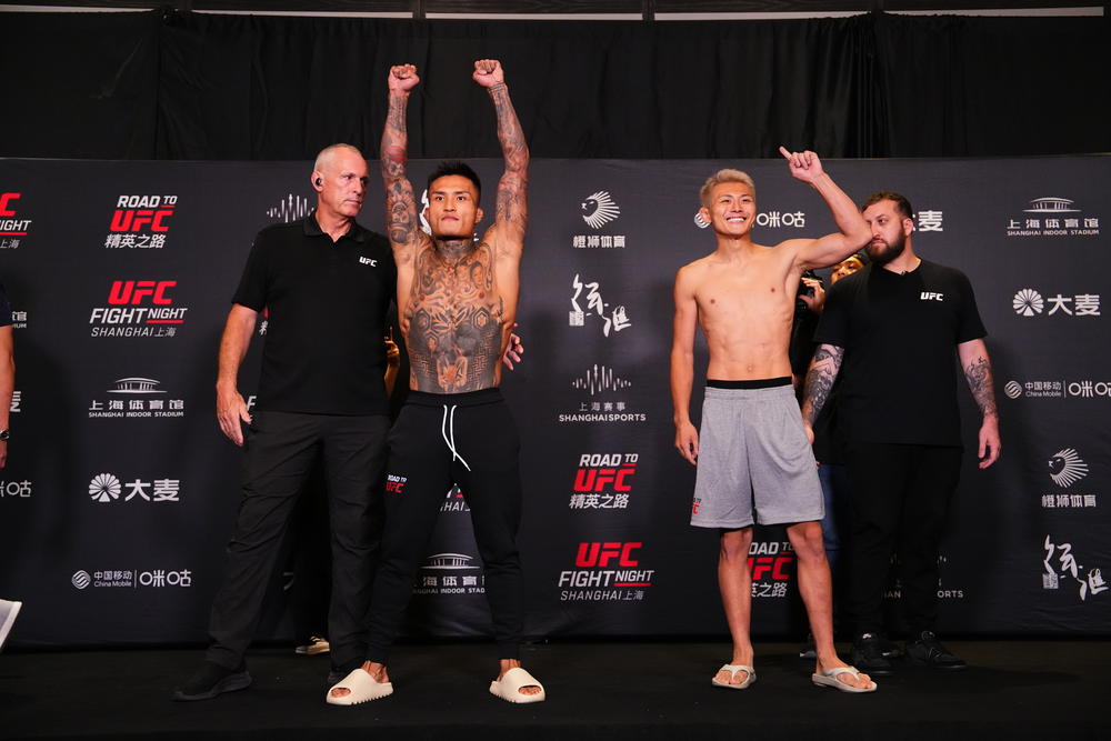 2025年8月22日(金)、中国・上海インドアスタジアムにて開催の『ROAD TO UFCシーズン4 準決勝 エピソード5&6』(UFC Fight Pass/U-NEXT配信)に向け21日(木)、前日計量が行われた(※大会速報はこちら)。